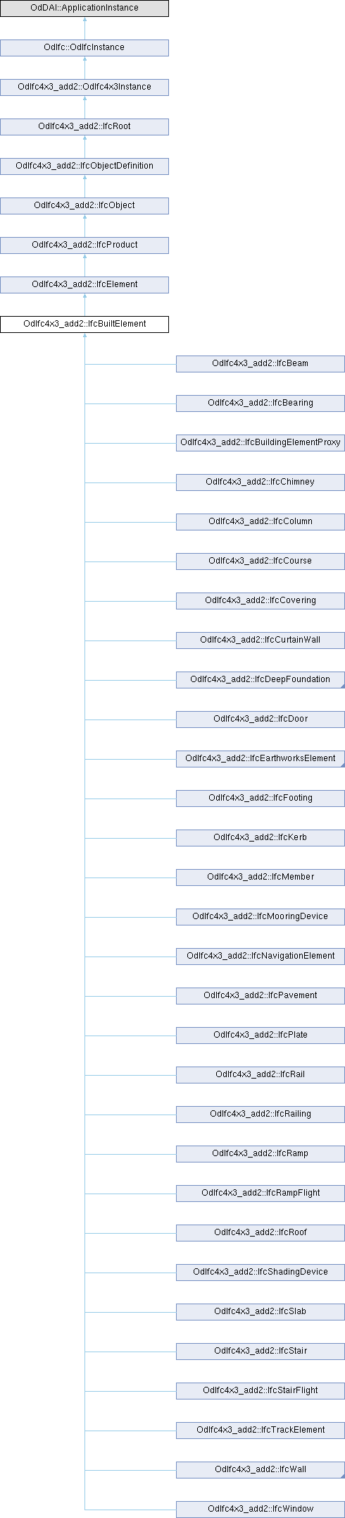 Reimplemented in OdIfc4x3_add2::IfcBeam, OdIfc4x3_add2::IfcBearing, OdIfc4x3_add2::IfcBuildingElementProxy, OdIfc4x3_add2::IfcCaissonFoundation, OdIfc4x3_add2::IfcChimney, OdIfc4x3_add2::IfcColumn, OdIfc4x3_add2::IfcCourse, OdIfc4x3_add2::IfcCovering, OdIfc4x3_add2::IfcCurtainWall, OdIfc4x3_add2::IfcDeepFoundation, OdIfc4x3_add2::IfcDoor, OdIfc4x3_add2::IfcEarthworksElement, OdIfc4x3_add2::IfcEarthworksFill, OdIfc4x3_add2::IfcFooting, OdIfc4x3_add2::IfcKerb, OdIfc4x3_add2::IfcMember, OdIfc4x3_add2::IfcMooringDevice, OdIfc4x3_add2::IfcNavigationElement, OdIfc4x3_add2::IfcPavement, OdIfc4x3_add2::IfcPile, OdIfc4x3_add2::IfcPlate, OdIfc4x3_add2::IfcRail, OdIfc4x3_add2::IfcRailing, OdIfc4x3_add2::IfcRamp, OdIfc4x3_add2::IfcRampFlight, OdIfc4x3_add2::IfcReinforcedSoil, OdIfc4x3_add2::IfcRoof, OdIfc4x3_add2::IfcShadingDevice, OdIfc4x3_add2::IfcSlab, OdIfc4x3_add2::IfcStair, OdIfc4x3_add2::IfcStairFlight, OdIfc4x3_add2::IfcTrackElement, OdIfc4x3_add2::IfcWall, OdIfc4x3_add2::IfcWallStandardCase, and OdIfc4x3_add2::IfcWindow.