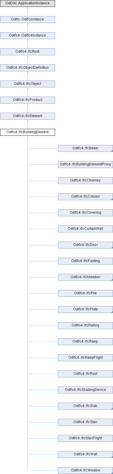 Reimplemented in OdIfc4::IfcBeam, OdIfc4::IfcBeamStandardCase, OdIfc4::IfcBuildingElementProxy, OdIfc4::IfcChimney, OdIfc4::IfcColumn, OdIfc4::IfcColumnStandardCase, OdIfc4::IfcCovering, OdIfc4::IfcCurtainWall, OdIfc4::IfcDoor, OdIfc4::IfcDoorStandardCase, OdIfc4::IfcFooting, OdIfc4::IfcMember, OdIfc4::IfcMemberStandardCase, OdIfc4::IfcPile, OdIfc4::IfcPlate, OdIfc4::IfcPlateStandardCase, OdIfc4::IfcRailing, OdIfc4::IfcRamp, OdIfc4::IfcRampFlight, OdIfc4::IfcRoof, OdIfc4::IfcShadingDevice, OdIfc4::IfcSlab, OdIfc4::IfcSlabElementedCase, OdIfc4::IfcSlabStandardCase, OdIfc4::IfcStair, OdIfc4::IfcStairFlight, OdIfc4::IfcWall, OdIfc4::IfcWallElementedCase, OdIfc4::IfcWallStandardCase, OdIfc4::IfcWindow, and OdIfc4::IfcWindowStandardCase.