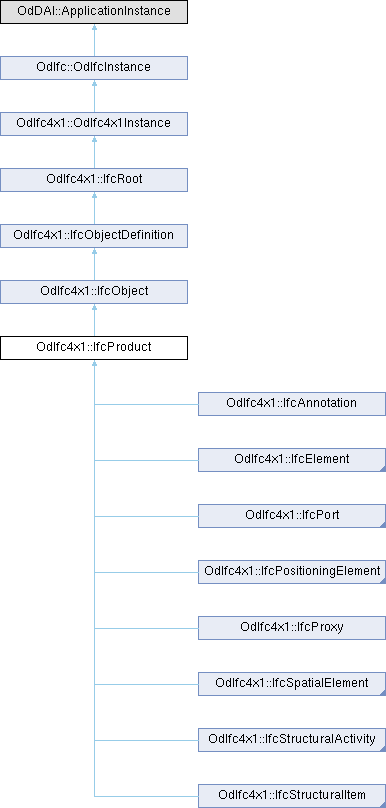 Reimplemented in OdIfc4x1::IfcActuator, OdIfc4x1::IfcAirTerminal, OdIfc4x1::IfcAirTerminalBox, OdIfc4x1::IfcAirToAirHeatRecovery, OdIfc4x1::IfcAlarm, OdIfc4x1::IfcAlignment, OdIfc4x1::IfcAnnotation, OdIfc4x1::IfcAudioVisualAppliance, OdIfc4x1::IfcBeam, OdIfc4x1::IfcBeamStandardCase, OdIfc4x1::IfcBoiler, OdIfc4x1::IfcBuilding, OdIfc4x1::IfcBuildingElement, OdIfc4x1::IfcBuildingElementPart, OdIfc4x1::IfcBuildingElementProxy, OdIfc4x1::IfcBuildingStorey, OdIfc4x1::IfcBurner, OdIfc4x1::IfcCableCarrierFitting, OdIfc4x1::IfcCableCarrierSegment, OdIfc4x1::IfcCableFitting, OdIfc4x1::IfcCableSegment, OdIfc4x1::IfcChiller, OdIfc4x1::IfcChimney, OdIfc4x1::IfcCivilElement, OdIfc4x1::IfcCoil, OdIfc4x1::IfcColumn, OdIfc4x1::IfcColumnStandardCase, OdIfc4x1::IfcCommunicationsAppliance, OdIfc4x1::IfcCompressor, OdIfc4x1::IfcCondenser, OdIfc4x1::IfcController, OdIfc4x1::IfcCooledBeam, OdIfc4x1::IfcCoolingTower, OdIfc4x1::IfcCovering, OdIfc4x1::IfcCurtainWall, OdIfc4x1::IfcDamper, OdIfc4x1::IfcDiscreteAccessory, OdIfc4x1::IfcDistributionChamberElement, OdIfc4x1::IfcDistributionControlElement, OdIfc4x1::IfcDistributionElement, OdIfc4x1::IfcDistributionFlowElement, OdIfc4x1::IfcDistributionPort, OdIfc4x1::IfcDoor, OdIfc4x1::IfcDoorStandardCase, OdIfc4x1::IfcDuctFitting, OdIfc4x1::IfcDuctSegment, OdIfc4x1::IfcDuctSilencer, OdIfc4x1::IfcElectricAppliance, OdIfc4x1::IfcElectricDistributionBoard, OdIfc4x1::IfcElectricFlowStorageDevice, OdIfc4x1::IfcElectricGenerator, OdIfc4x1::IfcElectricMotor, OdIfc4x1::IfcElectricTimeControl, OdIfc4x1::IfcElement, OdIfc4x1::IfcElementAssembly, OdIfc4x1::IfcElementComponent, OdIfc4x1::IfcEnergyConversionDevice, OdIfc4x1::IfcEngine, OdIfc4x1::IfcEvaporativeCooler, OdIfc4x1::IfcEvaporator, OdIfc4x1::IfcExternalSpatialElement, OdIfc4x1::IfcExternalSpatialStructureElement, OdIfc4x1::IfcFan, OdIfc4x1::IfcFastener, OdIfc4x1::IfcFeatureElement, OdIfc4x1::IfcFeatureElementAddition, OdIfc4x1::IfcFeatureElementSubtraction, OdIfc4x1::IfcFilter, OdIfc4x1::IfcFireSuppressionTerminal, OdIfc4x1::IfcFlowController, OdIfc4x1::IfcFlowFitting, OdIfc4x1::IfcFlowInstrument, OdIfc4x1::IfcFlowMeter, OdIfc4x1::IfcFlowMovingDevice, OdIfc4x1::IfcFlowSegment, OdIfc4x1::IfcFlowStorageDevice, OdIfc4x1::IfcFlowTerminal, OdIfc4x1::IfcFlowTreatmentDevice, OdIfc4x1::IfcFooting, OdIfc4x1::IfcFurnishingElement, OdIfc4x1::IfcFurniture, OdIfc4x1::IfcGeographicElement, OdIfc4x1::IfcGrid, OdIfc4x1::IfcHeatExchanger, OdIfc4x1::IfcHumidifier, OdIfc4x1::IfcInterceptor, OdIfc4x1::IfcJunctionBox, OdIfc4x1::IfcLamp, OdIfc4x1::IfcLightFixture, OdIfc4x1::IfcLinearPositioningElement, OdIfc4x1::IfcMechanicalFastener, OdIfc4x1::IfcMedicalDevice, OdIfc4x1::IfcMember, OdIfc4x1::IfcMemberStandardCase, OdIfc4x1::IfcMotorConnection, OdIfc4x1::IfcOpeningElement, OdIfc4x1::IfcOpeningStandardCase, OdIfc4x1::IfcOutlet, OdIfc4x1::IfcPile, OdIfc4x1::IfcPipeFitting, OdIfc4x1::IfcPipeSegment, OdIfc4x1::IfcPlate, OdIfc4x1::IfcPlateStandardCase, OdIfc4x1::IfcPort, OdIfc4x1::IfcPositioningElement, OdIfc4x1::IfcProjectionElement, OdIfc4x1::IfcProtectiveDevice, OdIfc4x1::IfcProtectiveDeviceTrippingUnit, OdIfc4x1::IfcProxy, OdIfc4x1::IfcPump, OdIfc4x1::IfcRailing, OdIfc4x1::IfcRamp, OdIfc4x1::IfcRampFlight, OdIfc4x1::IfcReferent, OdIfc4x1::IfcReinforcingBar, OdIfc4x1::IfcReinforcingElement, OdIfc4x1::IfcReinforcingMesh, OdIfc4x1::IfcRoof, OdIfc4x1::IfcSanitaryTerminal, OdIfc4x1::IfcSensor, OdIfc4x1::IfcShadingDevice, OdIfc4x1::IfcSite, OdIfc4x1::IfcSlab, OdIfc4x1::IfcSlabElementedCase, OdIfc4x1::IfcSlabStandardCase, OdIfc4x1::IfcSolarDevice, OdIfc4x1::IfcSpace, OdIfc4x1::IfcSpaceHeater, OdIfc4x1::IfcSpatialElement, OdIfc4x1::IfcSpatialStructureElement, OdIfc4x1::IfcSpatialZone, OdIfc4x1::IfcStackTerminal, OdIfc4x1::IfcStair, OdIfc4x1::IfcStairFlight, OdIfc4x1::IfcStructuralAction, OdIfc4x1::IfcStructuralActivity, OdIfc4x1::IfcStructuralConnection, OdIfc4x1::IfcStructuralCurveAction, OdIfc4x1::IfcStructuralCurveConnection, OdIfc4x1::IfcStructuralCurveMember, OdIfc4x1::IfcStructuralCurveMemberVarying, OdIfc4x1::IfcStructuralCurveReaction, OdIfc4x1::IfcStructuralItem, OdIfc4x1::IfcStructuralLinearAction, OdIfc4x1::IfcStructuralMember, OdIfc4x1::IfcStructuralPlanarAction, OdIfc4x1::IfcStructuralPointAction, OdIfc4x1::IfcStructuralPointConnection, OdIfc4x1::IfcStructuralPointReaction, OdIfc4x1::IfcStructuralReaction, OdIfc4x1::IfcStructuralSurfaceAction, OdIfc4x1::IfcStructuralSurfaceConnection, OdIfc4x1::IfcStructuralSurfaceMember, OdIfc4x1::IfcStructuralSurfaceMemberVarying, OdIfc4x1::IfcStructuralSurfaceReaction, OdIfc4x1::IfcSurfaceFeature, OdIfc4x1::IfcSwitchingDevice, OdIfc4x1::IfcSystemFurnitureElement, OdIfc4x1::IfcTank, OdIfc4x1::IfcTendon, OdIfc4x1::IfcTendonAnchor, OdIfc4x1::IfcTransformer, OdIfc4x1::IfcTransportElement, OdIfc4x1::IfcTubeBundle, OdIfc4x1::IfcUnitaryControlElement, OdIfc4x1::IfcUnitaryEquipment, OdIfc4x1::IfcValve, OdIfc4x1::IfcVibrationIsolator, OdIfc4x1::IfcVirtualElement, OdIfc4x1::IfcVoidingFeature, OdIfc4x1::IfcWall, OdIfc4x1::IfcWallElementedCase, OdIfc4x1::IfcWallStandardCase, OdIfc4x1::IfcWasteTerminal, OdIfc4x1::IfcWindow, and OdIfc4x1::IfcWindowStandardCase.
