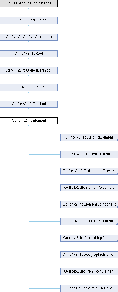 Reimplemented in OdIfc4x2::IfcActuator, OdIfc4x2::IfcAirTerminal, OdIfc4x2::IfcAirTerminalBox, OdIfc4x2::IfcAirToAirHeatRecovery, OdIfc4x2::IfcAlarm, OdIfc4x2::IfcAudioVisualAppliance, OdIfc4x2::IfcBeam, OdIfc4x2::IfcBearing, OdIfc4x2::IfcBoiler, OdIfc4x2::IfcBuildingElementPart, OdIfc4x2::IfcBuildingElementProxy, OdIfc4x2::IfcBurner, OdIfc4x2::IfcCableCarrierFitting, OdIfc4x2::IfcCableCarrierSegment, OdIfc4x2::IfcCableFitting, OdIfc4x2::IfcCableSegment, OdIfc4x2::IfcCaissonFoundation, OdIfc4x2::IfcChiller, OdIfc4x2::IfcChimney, OdIfc4x2::IfcCoil, OdIfc4x2::IfcColumn, OdIfc4x2::IfcCommunicationsAppliance, OdIfc4x2::IfcCompressor, OdIfc4x2::IfcCondenser, OdIfc4x2::IfcController, OdIfc4x2::IfcCooledBeam, OdIfc4x2::IfcCoolingTower, OdIfc4x2::IfcCovering, OdIfc4x2::IfcCurtainWall, OdIfc4x2::IfcDamper, OdIfc4x2::IfcDiscreteAccessory, OdIfc4x2::IfcDistributionChamberElement, OdIfc4x2::IfcDistributionControlElement, OdIfc4x2::IfcDistributionElement, OdIfc4x2::IfcDistributionFlowElement, OdIfc4x2::IfcDoor, OdIfc4x2::IfcDuctFitting, OdIfc4x2::IfcDuctSegment, OdIfc4x2::IfcDuctSilencer, OdIfc4x2::IfcElectricAppliance, OdIfc4x2::IfcElectricDistributionBoard, OdIfc4x2::IfcElectricFlowStorageDevice, OdIfc4x2::IfcElectricGenerator, OdIfc4x2::IfcElectricMotor, OdIfc4x2::IfcElectricTimeControl, OdIfc4x2::IfcElementAssembly, OdIfc4x2::IfcEngine, OdIfc4x2::IfcEvaporativeCooler, OdIfc4x2::IfcEvaporator, OdIfc4x2::IfcFan, OdIfc4x2::IfcFastener, OdIfc4x2::IfcFeatureElementAddition, OdIfc4x2::IfcFeatureElementSubtraction, OdIfc4x2::IfcFilter, OdIfc4x2::IfcFireSuppressionTerminal, OdIfc4x2::IfcFlowInstrument, OdIfc4x2::IfcFlowMeter, OdIfc4x2::IfcFooting, OdIfc4x2::IfcFurniture, OdIfc4x2::IfcGeographicElement, OdIfc4x2::IfcHeatExchanger, OdIfc4x2::IfcHumidifier, OdIfc4x2::IfcInterceptor, OdIfc4x2::IfcJunctionBox, OdIfc4x2::IfcLamp, OdIfc4x2::IfcLightFixture, OdIfc4x2::IfcMechanicalFastener, OdIfc4x2::IfcMedicalDevice, OdIfc4x2::IfcMember, OdIfc4x2::IfcMotorConnection, OdIfc4x2::IfcOpeningElement, OdIfc4x2::IfcOutlet, OdIfc4x2::IfcPile, OdIfc4x2::IfcPipeFitting, OdIfc4x2::IfcPipeSegment, OdIfc4x2::IfcPlate, OdIfc4x2::IfcProjectionElement, OdIfc4x2::IfcProtectiveDevice, OdIfc4x2::IfcProtectiveDeviceTrippingUnit, OdIfc4x2::IfcPump, OdIfc4x2::IfcRailing, OdIfc4x2::IfcRamp, OdIfc4x2::IfcRampFlight, OdIfc4x2::IfcReinforcingBar, OdIfc4x2::IfcReinforcingElement, OdIfc4x2::IfcReinforcingMesh, OdIfc4x2::IfcRoof, OdIfc4x2::IfcSanitaryTerminal, OdIfc4x2::IfcSensor, OdIfc4x2::IfcShadingDevice, OdIfc4x2::IfcSlab, OdIfc4x2::IfcSolarDevice, OdIfc4x2::IfcSpaceHeater, OdIfc4x2::IfcStackTerminal, OdIfc4x2::IfcStair, OdIfc4x2::IfcStairFlight, OdIfc4x2::IfcSurfaceFeature, OdIfc4x2::IfcSwitchingDevice, OdIfc4x2::IfcSystemFurnitureElement, OdIfc4x2::IfcTank, OdIfc4x2::IfcTendon, OdIfc4x2::IfcTendonAnchor, OdIfc4x2::IfcTendonConduit, OdIfc4x2::IfcTransformer, OdIfc4x2::IfcTransportElement, OdIfc4x2::IfcTubeBundle, OdIfc4x2::IfcUnitaryControlElement, OdIfc4x2::IfcUnitaryEquipment, OdIfc4x2::IfcValve, OdIfc4x2::IfcVibrationDamper, OdIfc4x2::IfcVibrationIsolator, OdIfc4x2::IfcVoidingFeature, OdIfc4x2::IfcWall, OdIfc4x2::IfcWasteTerminal, and OdIfc4x2::IfcWindow.
