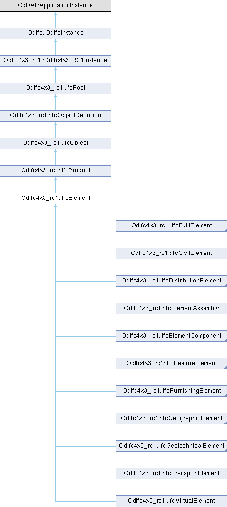Reimplemented in OdIfc4x3_rc1::IfcActuator, OdIfc4x3_rc1::IfcAirTerminal, OdIfc4x3_rc1::IfcAirTerminalBox, OdIfc4x3_rc1::IfcAirToAirHeatRecovery, OdIfc4x3_rc1::IfcAlarm, OdIfc4x3_rc1::IfcAudioVisualAppliance, OdIfc4x3_rc1::IfcBeam, OdIfc4x3_rc1::IfcBeamStandardCase, OdIfc4x3_rc1::IfcBearing, OdIfc4x3_rc1::IfcBoiler, OdIfc4x3_rc1::IfcBorehole, OdIfc4x3_rc1::IfcBuildingElementPart, OdIfc4x3_rc1::IfcBuildingElementProxy, OdIfc4x3_rc1::IfcBuiltElement, OdIfc4x3_rc1::IfcBurner, OdIfc4x3_rc1::IfcCableCarrierFitting, OdIfc4x3_rc1::IfcCableCarrierSegment, OdIfc4x3_rc1::IfcCableFitting, OdIfc4x3_rc1::IfcCableSegment, OdIfc4x3_rc1::IfcCaissonFoundation, OdIfc4x3_rc1::IfcChiller, OdIfc4x3_rc1::IfcChimney, OdIfc4x3_rc1::IfcCivilElement, OdIfc4x3_rc1::IfcCoil, OdIfc4x3_rc1::IfcColumn, OdIfc4x3_rc1::IfcColumnStandardCase, OdIfc4x3_rc1::IfcCommunicationsAppliance, OdIfc4x3_rc1::IfcCompressor, OdIfc4x3_rc1::IfcCondenser, OdIfc4x3_rc1::IfcController, OdIfc4x3_rc1::IfcConveyorSegment, OdIfc4x3_rc1::IfcCooledBeam, OdIfc4x3_rc1::IfcCoolingTower, OdIfc4x3_rc1::IfcCourse, OdIfc4x3_rc1::IfcCovering, OdIfc4x3_rc1::IfcCurtainWall, OdIfc4x3_rc1::IfcDamper, OdIfc4x3_rc1::IfcDeepFoundation, OdIfc4x3_rc1::IfcDiscreteAccessory, OdIfc4x3_rc1::IfcDistributionBoard, OdIfc4x3_rc1::IfcDistributionChamberElement, OdIfc4x3_rc1::IfcDistributionControlElement, OdIfc4x3_rc1::IfcDistributionElement, OdIfc4x3_rc1::IfcDistributionFlowElement, OdIfc4x3_rc1::IfcDoor, OdIfc4x3_rc1::IfcDoorStandardCase, OdIfc4x3_rc1::IfcDuctFitting, OdIfc4x3_rc1::IfcDuctSegment, OdIfc4x3_rc1::IfcDuctSilencer, OdIfc4x3_rc1::IfcEarthworksCut, OdIfc4x3_rc1::IfcEarthworksElement, OdIfc4x3_rc1::IfcEarthworksFill, OdIfc4x3_rc1::IfcElectricAppliance, OdIfc4x3_rc1::IfcElectricDistributionBoard, OdIfc4x3_rc1::IfcElectricFlowStorageDevice, OdIfc4x3_rc1::IfcElectricFlowTreatmentDevice, OdIfc4x3_rc1::IfcElectricGenerator, OdIfc4x3_rc1::IfcElectricMotor, OdIfc4x3_rc1::IfcElectricTimeControl, OdIfc4x3_rc1::IfcElementAssembly, OdIfc4x3_rc1::IfcElementComponent, OdIfc4x3_rc1::IfcEnergyConversionDevice, OdIfc4x3_rc1::IfcEngine, OdIfc4x3_rc1::IfcEvaporativeCooler, OdIfc4x3_rc1::IfcEvaporator, OdIfc4x3_rc1::IfcFan, OdIfc4x3_rc1::IfcFastener, OdIfc4x3_rc1::IfcFeatureElement, OdIfc4x3_rc1::IfcFeatureElementAddition, OdIfc4x3_rc1::IfcFeatureElementSubtraction, OdIfc4x3_rc1::IfcFilter, OdIfc4x3_rc1::IfcFireSuppressionTerminal, OdIfc4x3_rc1::IfcFlowController, OdIfc4x3_rc1::IfcFlowFitting, OdIfc4x3_rc1::IfcFlowInstrument, OdIfc4x3_rc1::IfcFlowMeter, OdIfc4x3_rc1::IfcFlowMovingDevice, OdIfc4x3_rc1::IfcFlowSegment, OdIfc4x3_rc1::IfcFlowStorageDevice, OdIfc4x3_rc1::IfcFlowTerminal, OdIfc4x3_rc1::IfcFlowTreatmentDevice, OdIfc4x3_rc1::IfcFooting, OdIfc4x3_rc1::IfcFurnishingElement, OdIfc4x3_rc1::IfcFurniture, OdIfc4x3_rc1::IfcGeographicElement, OdIfc4x3_rc1::IfcGeomodel, OdIfc4x3_rc1::IfcGeoslice, OdIfc4x3_rc1::IfcGeotechnicalAssembly, OdIfc4x3_rc1::IfcGeotechnicalElement, OdIfc4x3_rc1::IfcGeotechnicalStratum, OdIfc4x3_rc1::IfcHeatExchanger, OdIfc4x3_rc1::IfcHumidifier, OdIfc4x3_rc1::IfcImpactProtectionDevice, OdIfc4x3_rc1::IfcInterceptor, OdIfc4x3_rc1::IfcJunctionBox, OdIfc4x3_rc1::IfcKerb, OdIfc4x3_rc1::IfcLamp, OdIfc4x3_rc1::IfcLightFixture, OdIfc4x3_rc1::IfcLiquidTerminal, OdIfc4x3_rc1::IfcMechanicalFastener, OdIfc4x3_rc1::IfcMedicalDevice, OdIfc4x3_rc1::IfcMember, OdIfc4x3_rc1::IfcMemberStandardCase, OdIfc4x3_rc1::IfcMobileTelecommunicationsAppliance, OdIfc4x3_rc1::IfcMooringDevice, OdIfc4x3_rc1::IfcMotorConnection, OdIfc4x3_rc1::IfcNavigationElement, OdIfc4x3_rc1::IfcOpeningElement, OdIfc4x3_rc1::IfcOpeningStandardCase, OdIfc4x3_rc1::IfcOutlet, OdIfc4x3_rc1::IfcPavement, OdIfc4x3_rc1::IfcPile, OdIfc4x3_rc1::IfcPipeFitting, OdIfc4x3_rc1::IfcPipeSegment, OdIfc4x3_rc1::IfcPlant, OdIfc4x3_rc1::IfcPlate, OdIfc4x3_rc1::IfcPlateStandardCase, OdIfc4x3_rc1::IfcProjectionElement, OdIfc4x3_rc1::IfcProtectiveDevice, OdIfc4x3_rc1::IfcProtectiveDeviceTrippingUnit, OdIfc4x3_rc1::IfcPump, OdIfc4x3_rc1::IfcRail, OdIfc4x3_rc1::IfcRailing, OdIfc4x3_rc1::IfcRamp, OdIfc4x3_rc1::IfcRampFlight, OdIfc4x3_rc1::IfcReinforcedSoil, OdIfc4x3_rc1::IfcReinforcingBar, OdIfc4x3_rc1::IfcReinforcingElement, OdIfc4x3_rc1::IfcReinforcingMesh, OdIfc4x3_rc1::IfcRoof, OdIfc4x3_rc1::IfcSanitaryTerminal, OdIfc4x3_rc1::IfcSensor, OdIfc4x3_rc1::IfcShadingDevice, OdIfc4x3_rc1::IfcSign, OdIfc4x3_rc1::IfcSignal, OdIfc4x3_rc1::IfcSlab, OdIfc4x3_rc1::IfcSlabElementedCase, OdIfc4x3_rc1::IfcSlabStandardCase, OdIfc4x3_rc1::IfcSolarDevice, OdIfc4x3_rc1::IfcSolidStratum, OdIfc4x3_rc1::IfcSpaceHeater, OdIfc4x3_rc1::IfcStackTerminal, OdIfc4x3_rc1::IfcStair, OdIfc4x3_rc1::IfcStairFlight, OdIfc4x3_rc1::IfcSurfaceFeature, OdIfc4x3_rc1::IfcSwitchingDevice, OdIfc4x3_rc1::IfcSystemFurnitureElement, OdIfc4x3_rc1::IfcTank, OdIfc4x3_rc1::IfcTendon, OdIfc4x3_rc1::IfcTendonAnchor, OdIfc4x3_rc1::IfcTendonConduit, OdIfc4x3_rc1::IfcTrackElement, OdIfc4x3_rc1::IfcTransformer, OdIfc4x3_rc1::IfcTransportElement, OdIfc4x3_rc1::IfcTubeBundle, OdIfc4x3_rc1::IfcUnitaryControlElement, OdIfc4x3_rc1::IfcUnitaryEquipment, OdIfc4x3_rc1::IfcValve, OdIfc4x3_rc1::IfcVibrationDamper, OdIfc4x3_rc1::IfcVibrationIsolator, OdIfc4x3_rc1::IfcVirtualElement, OdIfc4x3_rc1::IfcVoidingFeature, OdIfc4x3_rc1::IfcVoidStratum, OdIfc4x3_rc1::IfcWall, OdIfc4x3_rc1::IfcWallElementedCase, OdIfc4x3_rc1::IfcWallStandardCase, OdIfc4x3_rc1::IfcWasteTerminal, OdIfc4x3_rc1::IfcWaterStratum, OdIfc4x3_rc1::IfcWindow, and OdIfc4x3_rc1::IfcWindowStandardCase.