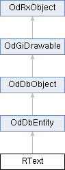 This class represents Reactive text (RText) entities in an OdDbDatabase instance. Corresponding C++ library: RText